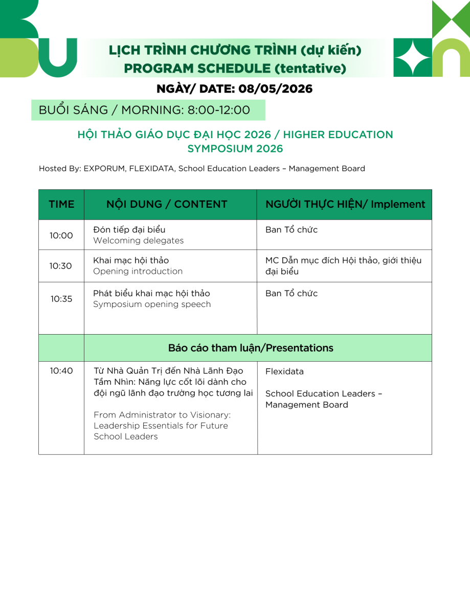• 14.00 - 14.10: Opening remarks by Education Vietnam